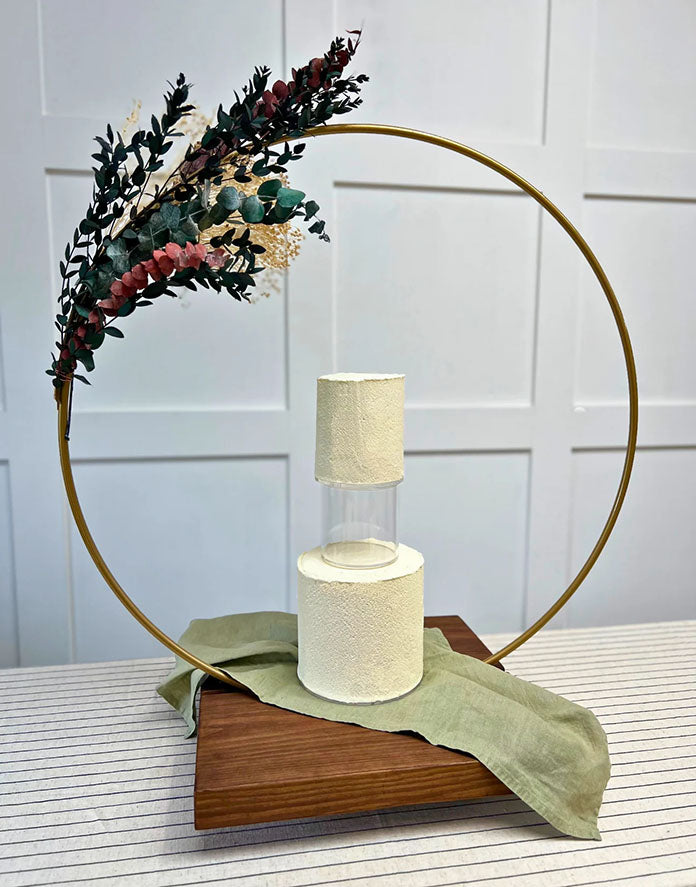 Incorporate flowers, figurines, or other decorations to fill in gaps between tiers. This can create a really personal touch to your cake. Why not add hand-painted elements or fill acrylic spacers with items personal to you? Speak to your cake artist about using decorative spacers to create a truly personalised wedding cake that's unique to your day and matches the aesthetic of your venue.