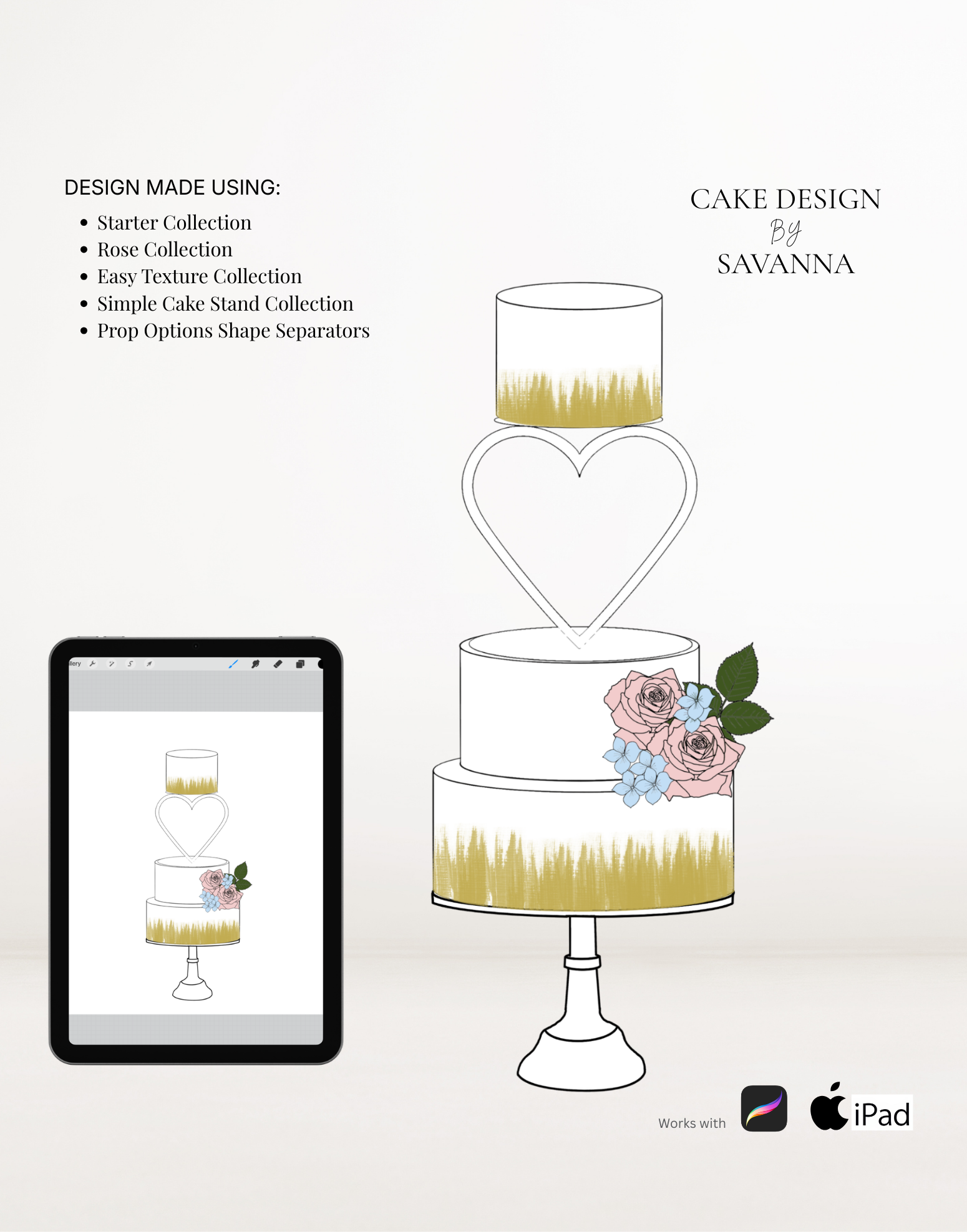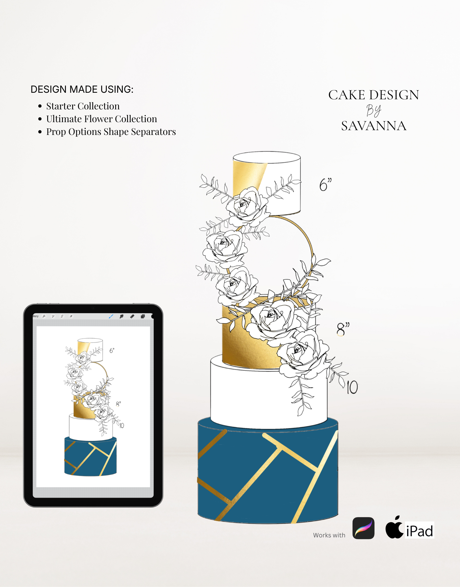 The perfect way to sketch your cake designs. Use these stamps with the Procreate App (available on iPhone and iPad) to design beautiful cakes for your customers.