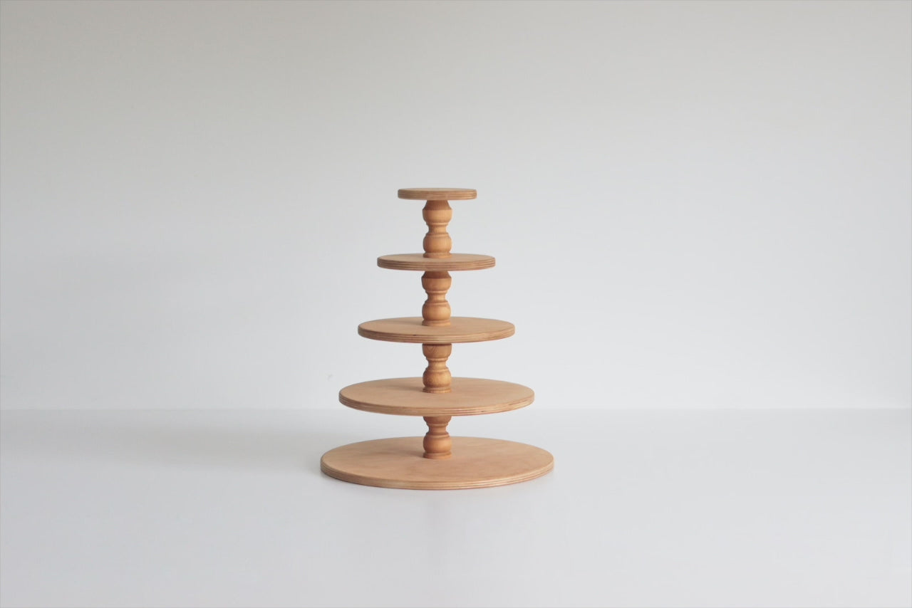 The Adjustable Afternoon Tea Display Stand is a handcrafted wooden tiered stand made from high-quality Scandinavian birch and signature pine. Designed for showcasing cakes, pastries, and finger foods, this stand adjusts to 3, 4, or 5 tiers depending on your setup. With its elegant natural woodgrain finishes and food-safe build, it brings timeless style to weddings, parties, or classic afternoon tea spreads. Each tier stacks with a central column for strength, while the stand disassembles easily for compact storage.