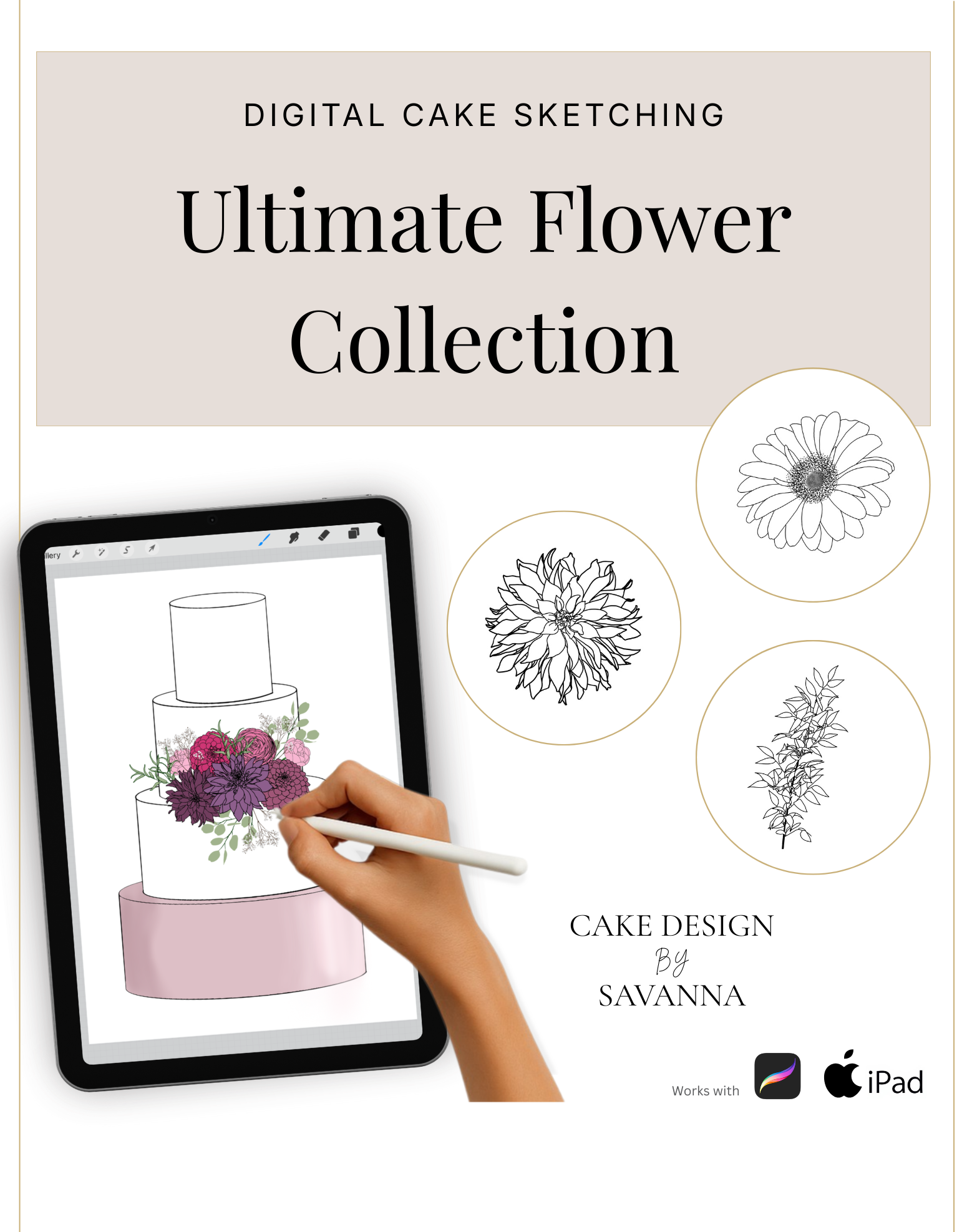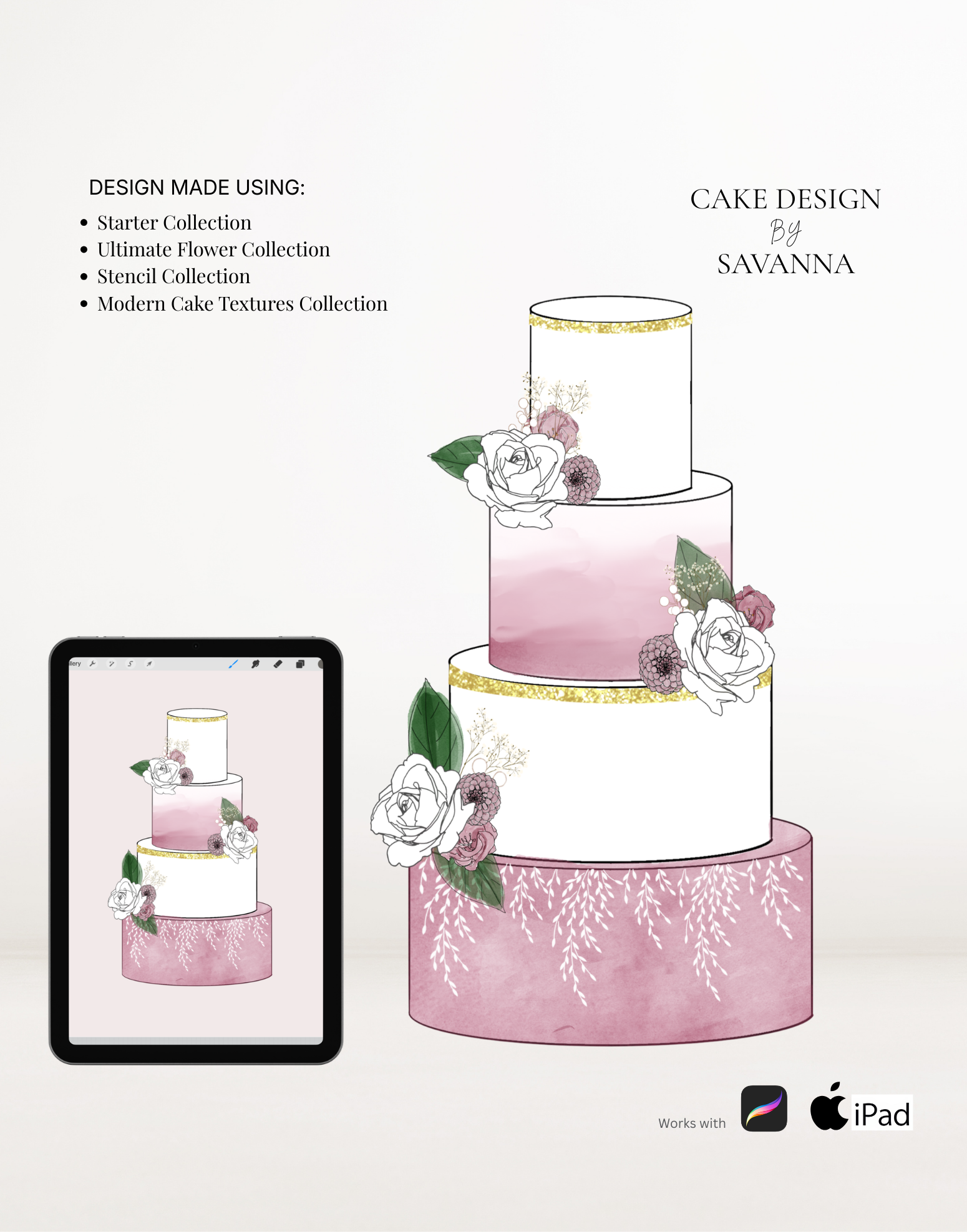 These flower procreate stamps are easy to use on your cake designs. And they really do give such a beautiful look to your designs.