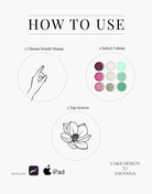 Simple to use, just stamp onto the cake design and resize and duplicate as needed.