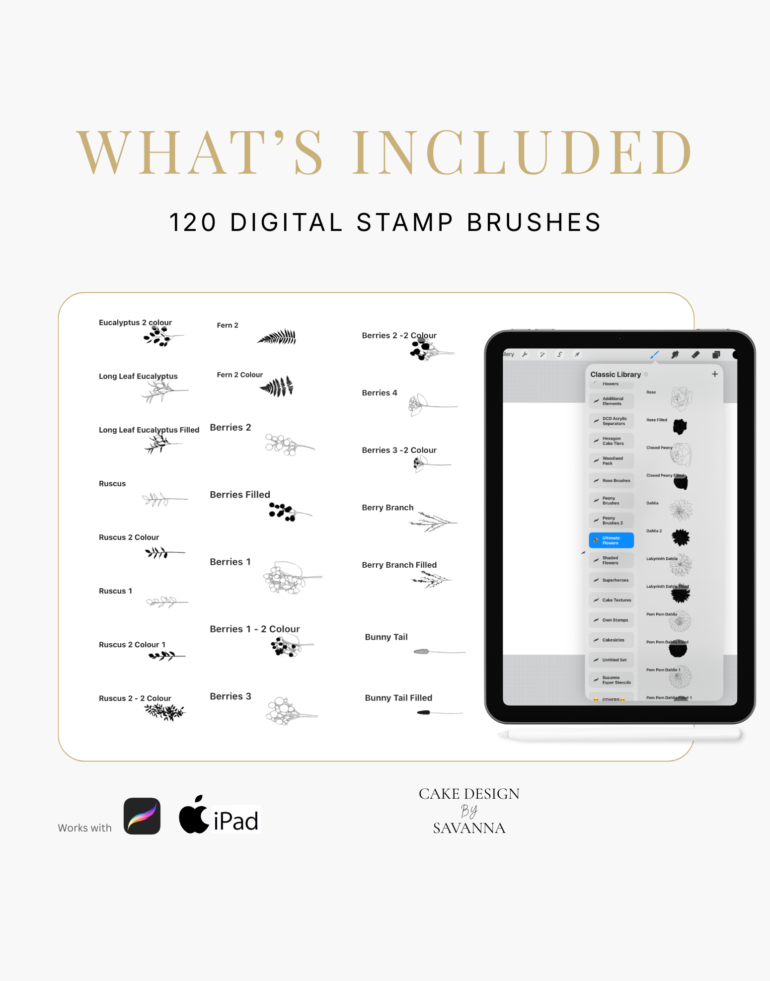 Digital products are compatible with the Procreate App, available from the Apple App Store for both iPhone and iPad. Procreate is not included with any of our digital products.