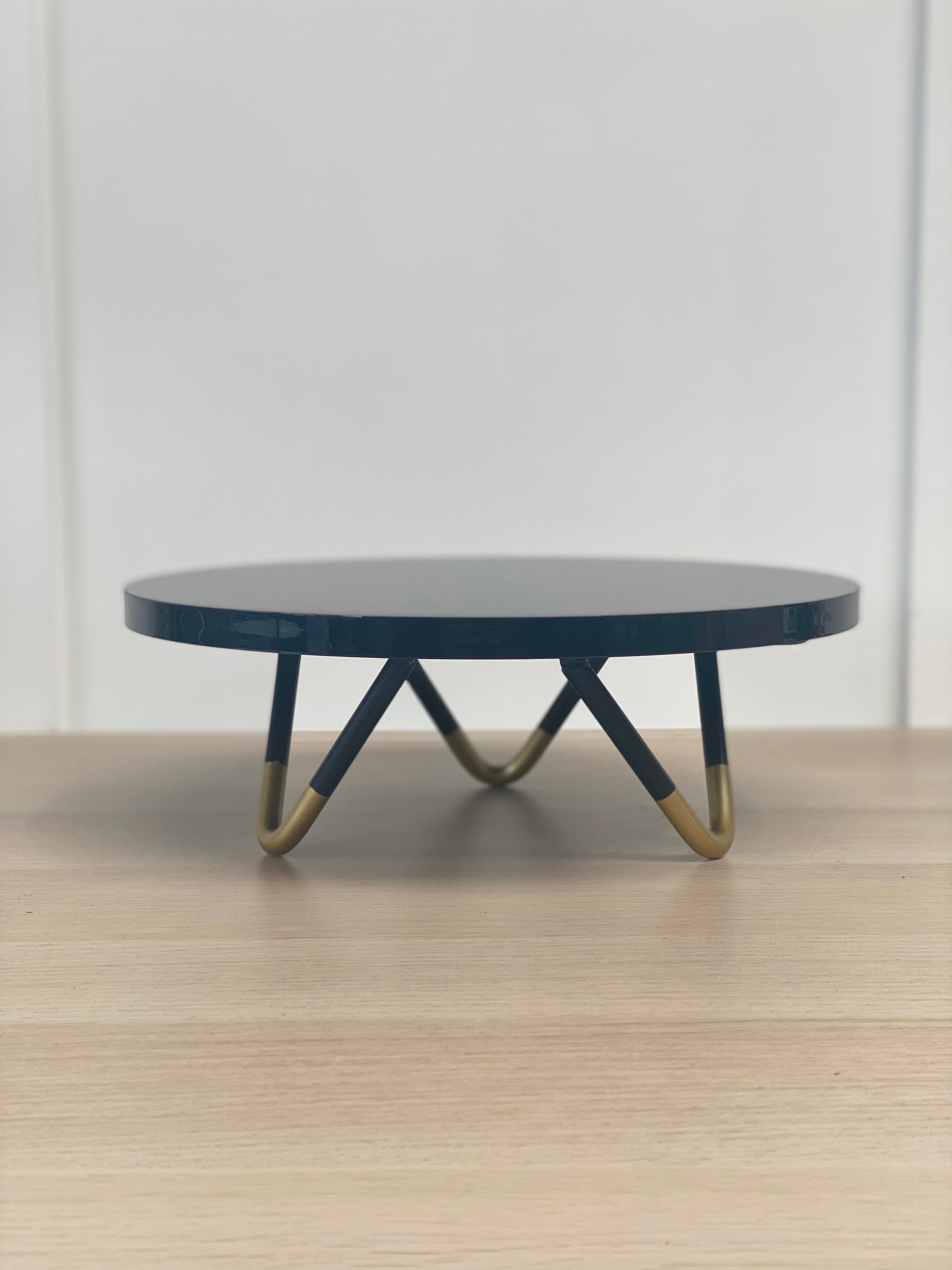 OUTLET - The Pinnacle acrylic hairpin cake stand - 12" Short Black w/ Black & Gold Legs - Imperfect