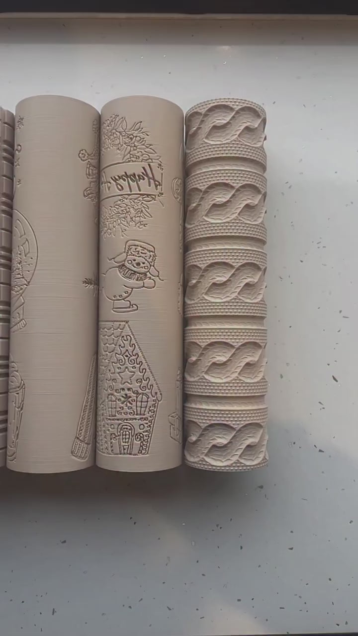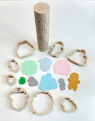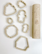 A collection of small illustrated winter motifs including hats, snowglobes and character shapes. Each motif has a matching cutter for clean, precise cut-outs which can be purchased with the rolling pin.