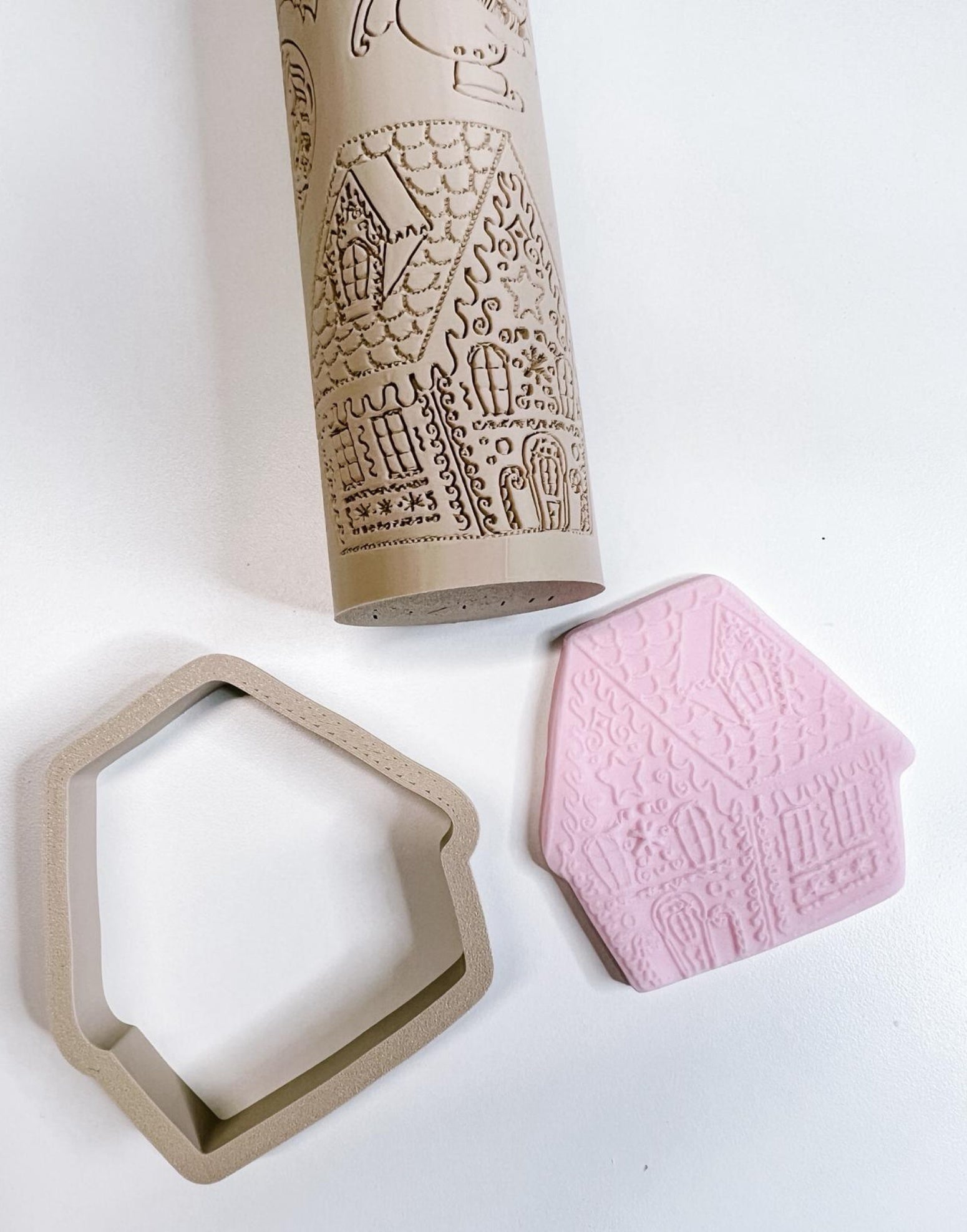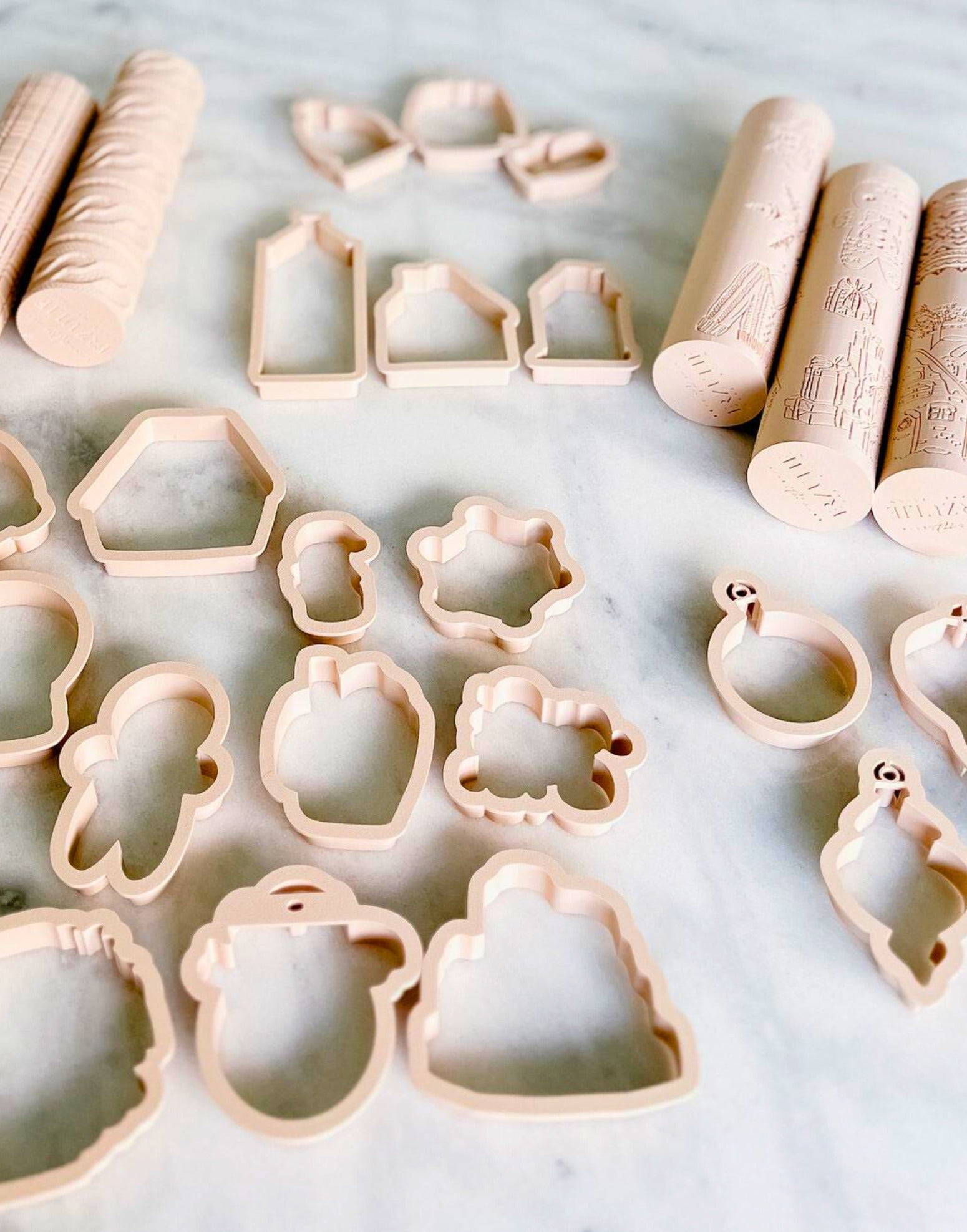 Selected designs include matching cutters shaped exactly to the illustrated motifs, allowing you to emboss the pattern and then cut each element cleanly for toppers, biscuits or decorative pieces. Made in the UK, each tool is finished in a soft nude matte tone for a refined, signature look.