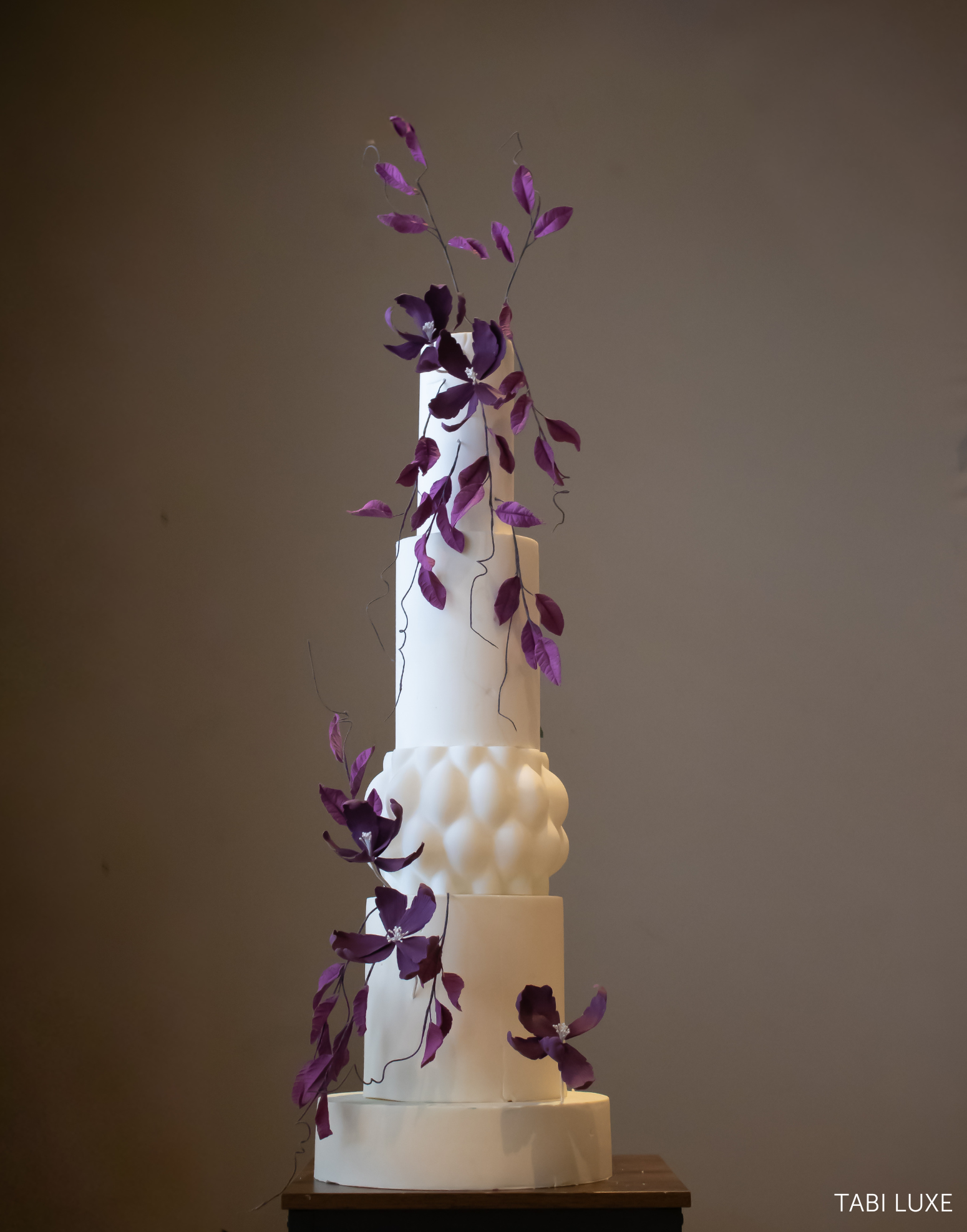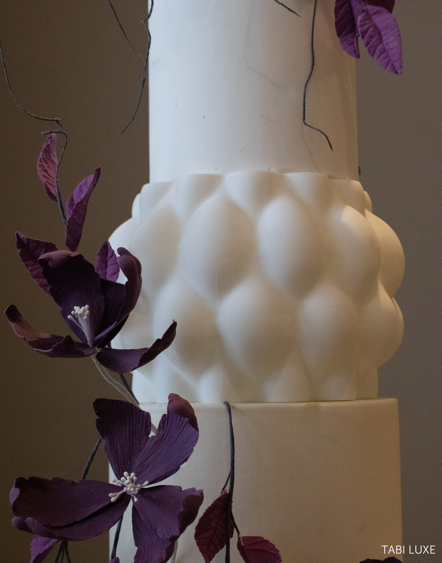 The Bami Sculpted Cake Tier forms part of the Tabi Luxe Collection, an exclusive designer collaboration with Tabi Cakes. Its rounded, cushioned sculpted surface creates a bold visual feature within a stacked cake, offering contrast against smooth iced tiers and clean finishes.