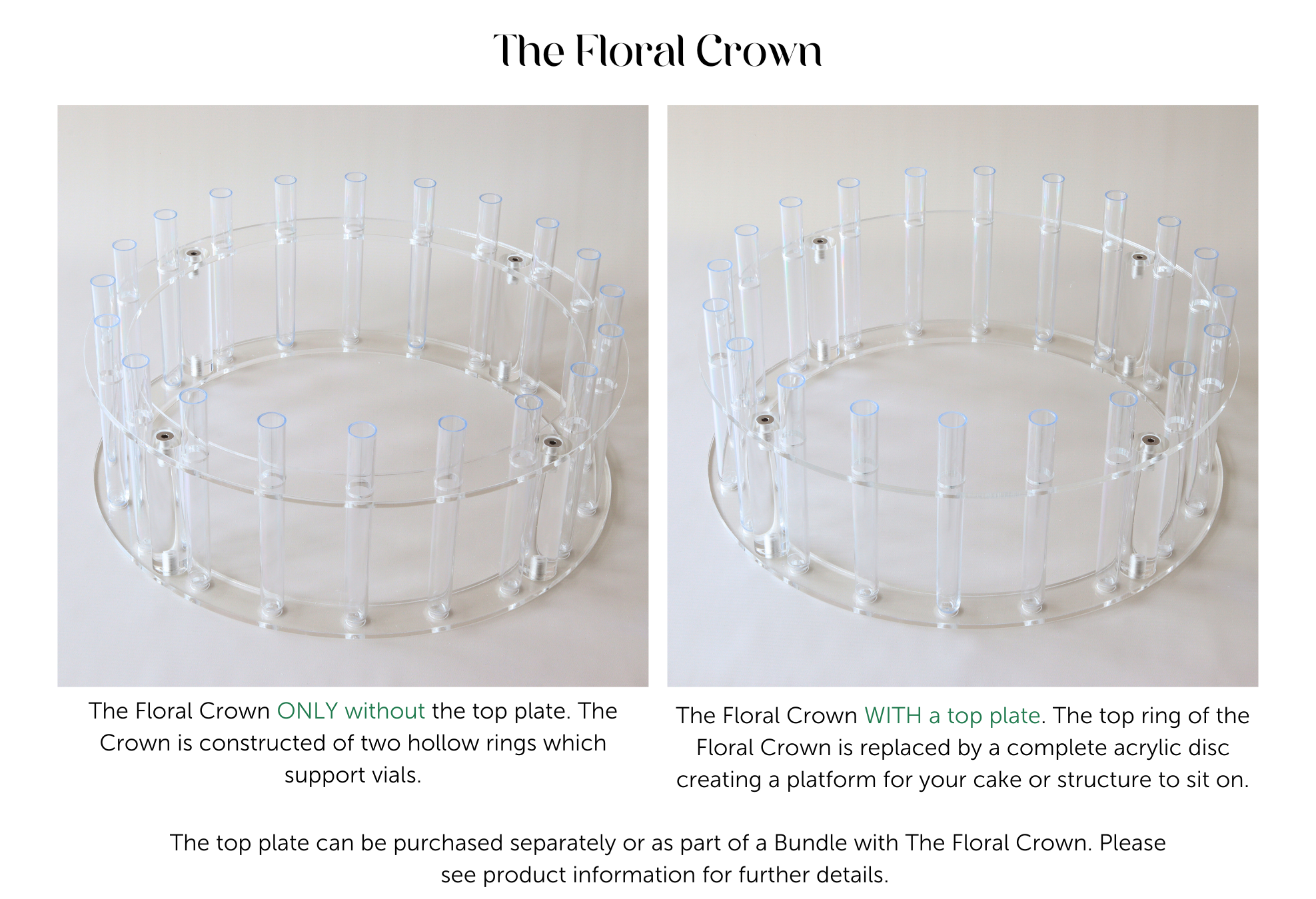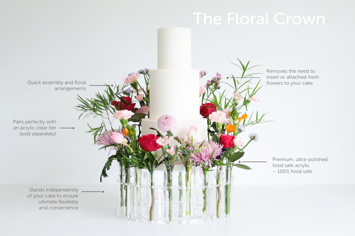 With every detail taken care of, the Crown works as a standalone piece for any table display, or creates a match made in heaven with our premium acrylic fillable cake stands. We are also delighted to be able to offer the option to add an acrylic top cake plate (sold separately or together as a bundle with the Floral Crown) that has been specifically designed for the Floral Crown, turning your Floral Crown into a complete cake stand ensuring you have everything you need to make your next design bloom.