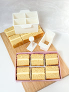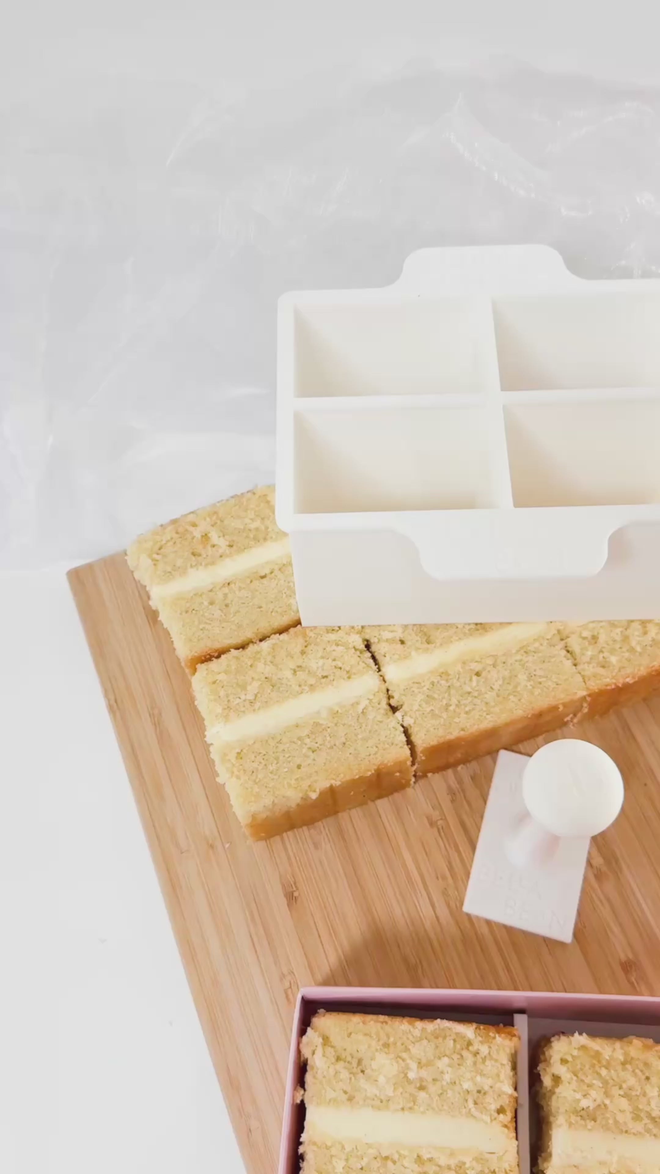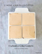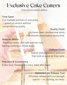 The Exclusive Cake Cutter has been designed to make portioning quick, consistent, and professional. It allows you to create neat, uniform slices that fit perfectly into treat boxes, tasters, or celebration servings.