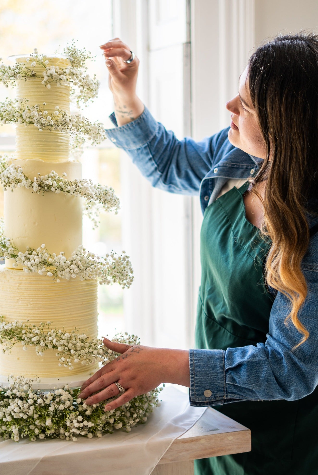 Flourish & Flotts embraced natural textures with their airy, garden-inspired cake. Fresh baby's breath spirals up the stand in soft clouds, pairing perfectly with the textured buttercream. The Cake Spiral™ acts like a trellis here, guiding the flowers upward and creating a dreamy, romantic flow that’s perfect for weddings.