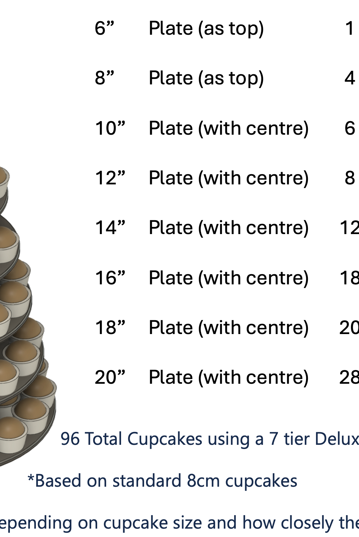 And because we are committed to making sure that your cakes are put on the strongest pedestal, all our configurable bases have a handy guide on them telling you the ideal diameter cake plate to pair them with – so you can feel confident and safe in the knowledge that your cake will always be placed on a very sturdy foundation – just check the base to make sure you’re putting it with the right size top plate.