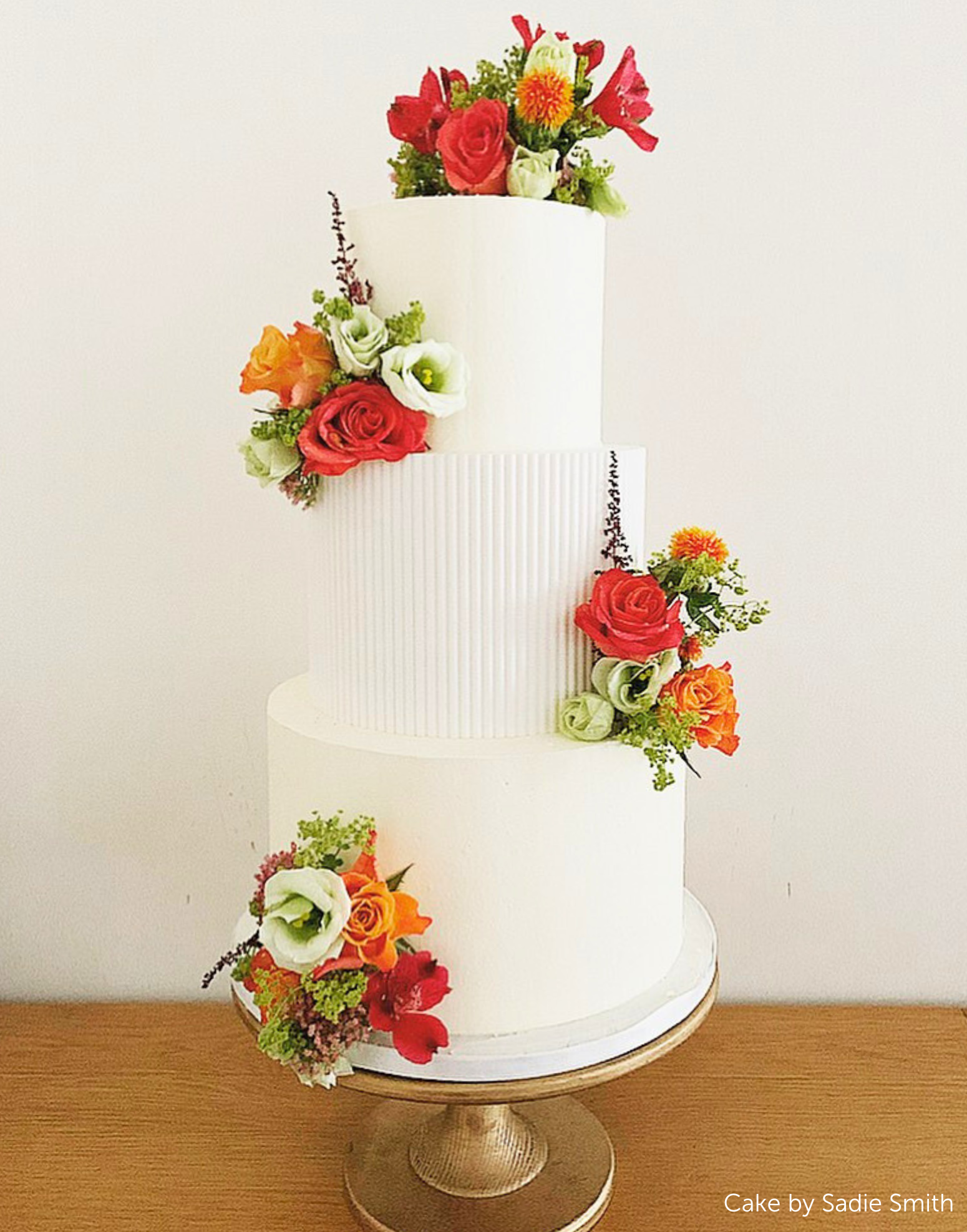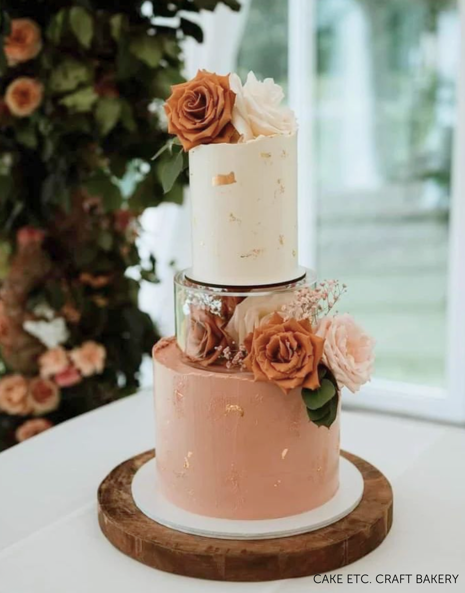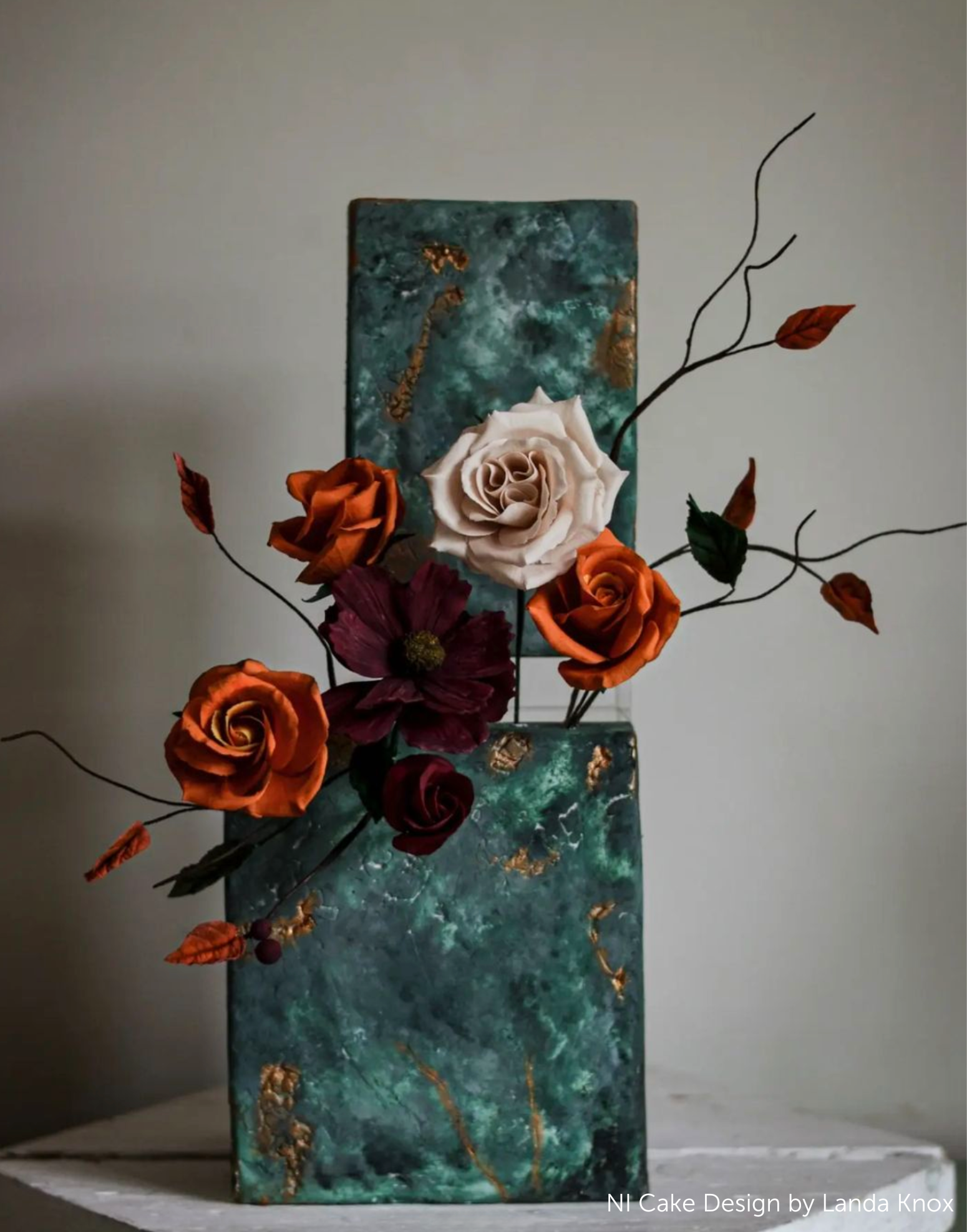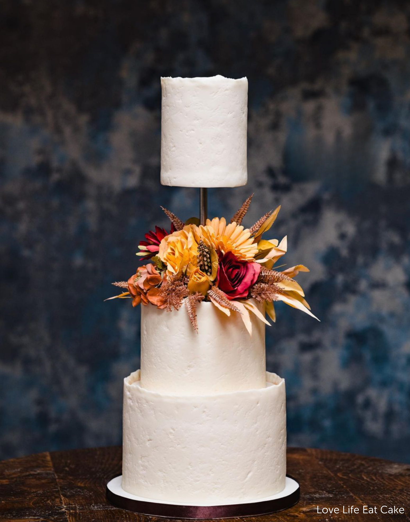 Con un diseño llamativo pero elegante, @lovelifeeatcake eleva su creación utilizando una barra central para proporcionar un espacio negativo en el que añaden el toque perfecto de color otoñal.