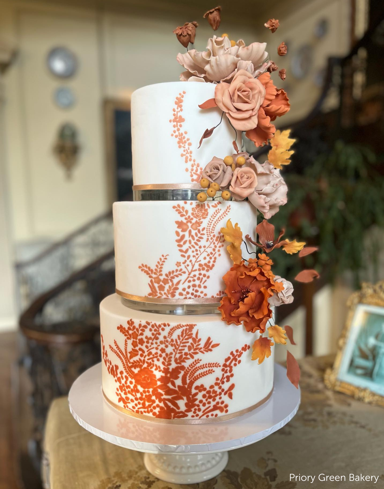 Los niveles de elegancia se combinan increíblemente con nuestro separador de láminas mientras @cake_by_sadie_smith presenta un diseño fabuloso que cautiva el encanto y la belleza del otoño.