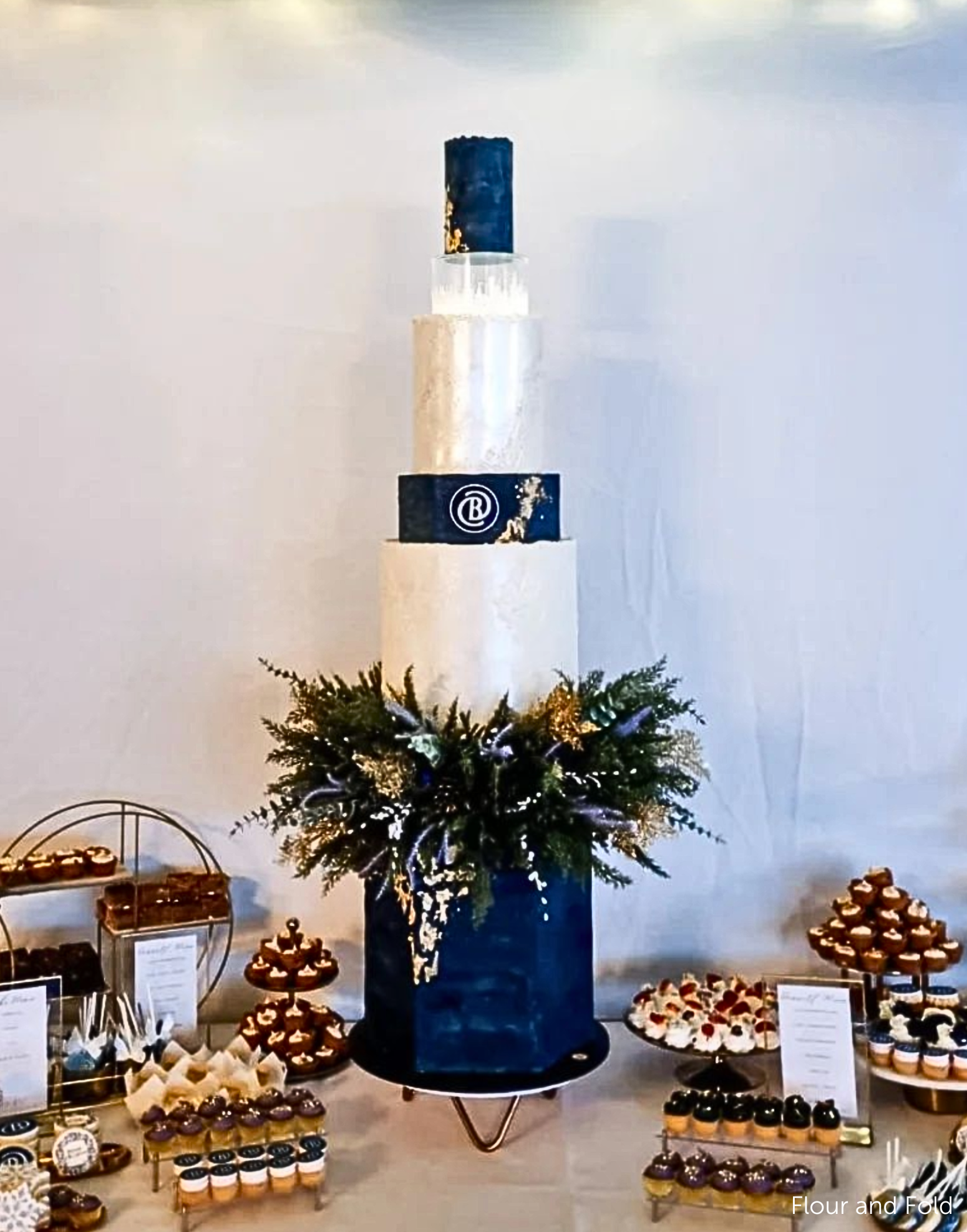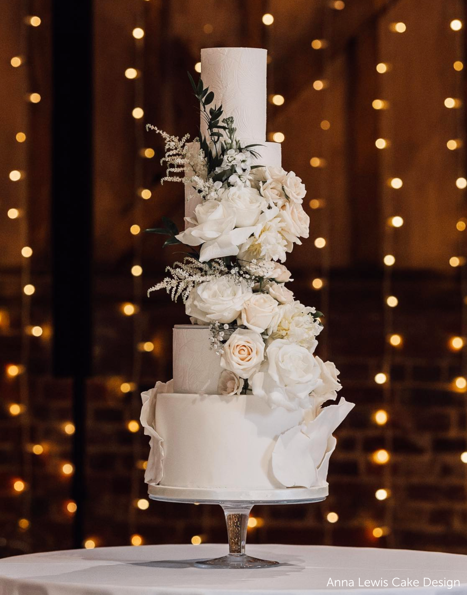 Una cascada de luces blancas cálidas crea el escenario perfecto para este impresionante diseño de @cakes_by_kirsten , donde una combinación de medios crea un deleite cálido y acogedor.