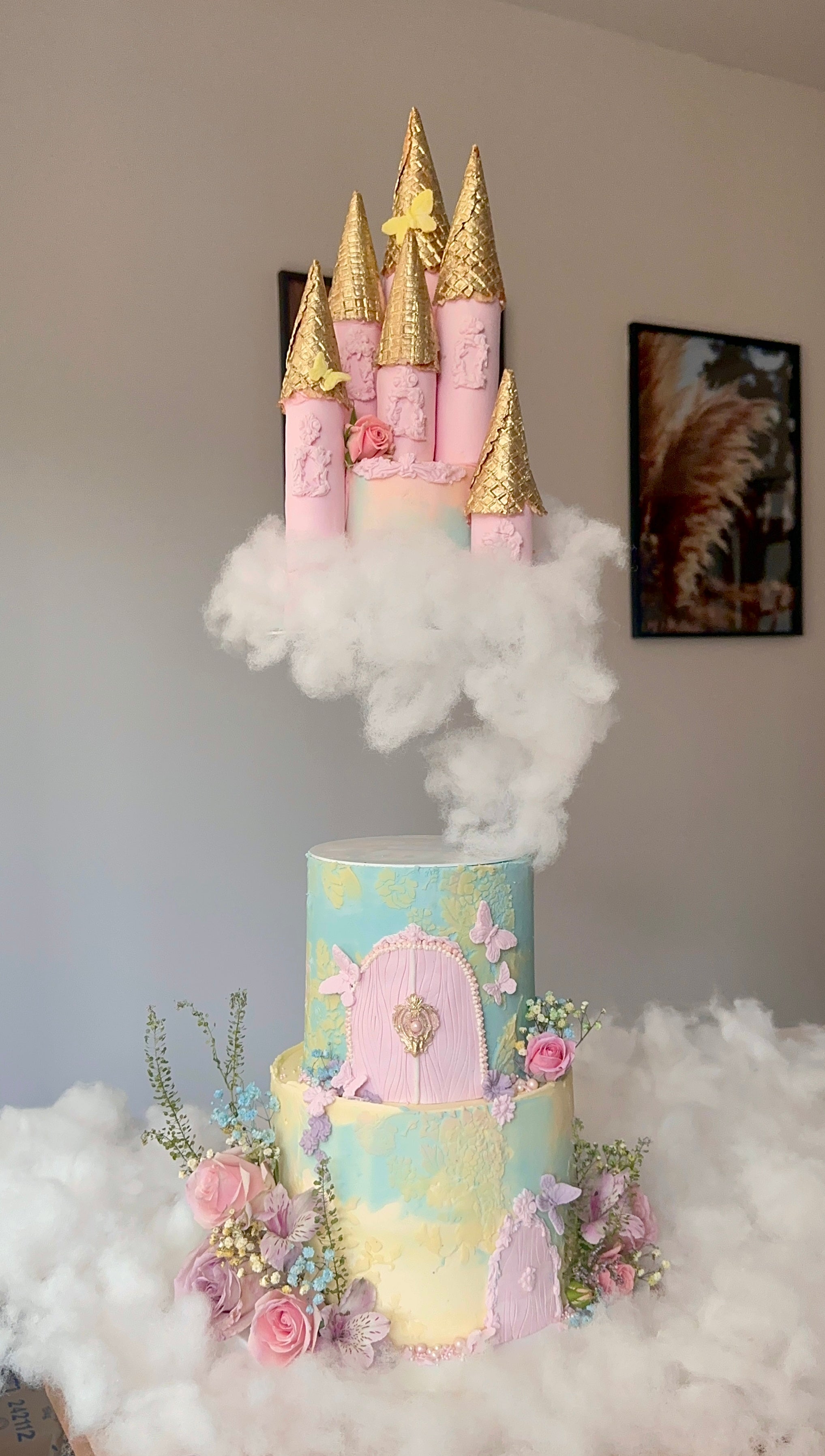 Mi confianza ha crecido enormemente y siento que este es mi punto fuerte en el arte de la repostería. He podido probar métodos para encontrar lo que se adapta a mí, lo que a su vez ha elevado mi negocio a muchos niveles a nivel mundial. Ahora pasemos a lo que todos están esperando con más ansias... "La tarta del castillo en las nubes".