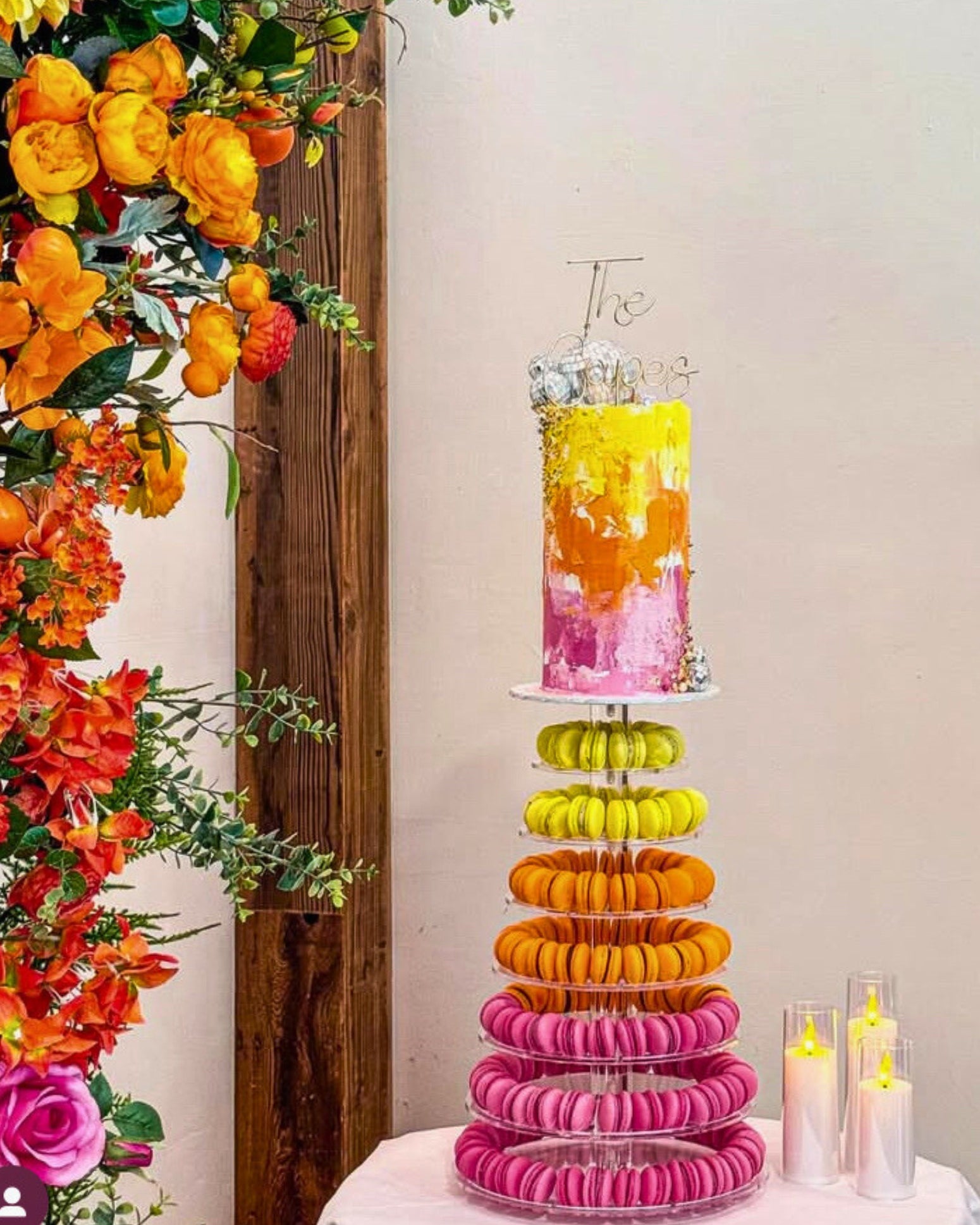 Tenemos una gran variedad de soportes para exhibición de pasteles con una variedad de opciones, que incluyen soportes para cake pops , soportes para cupcakes , soportes para donas , soportes para macarrones y pedestales para pasteles .