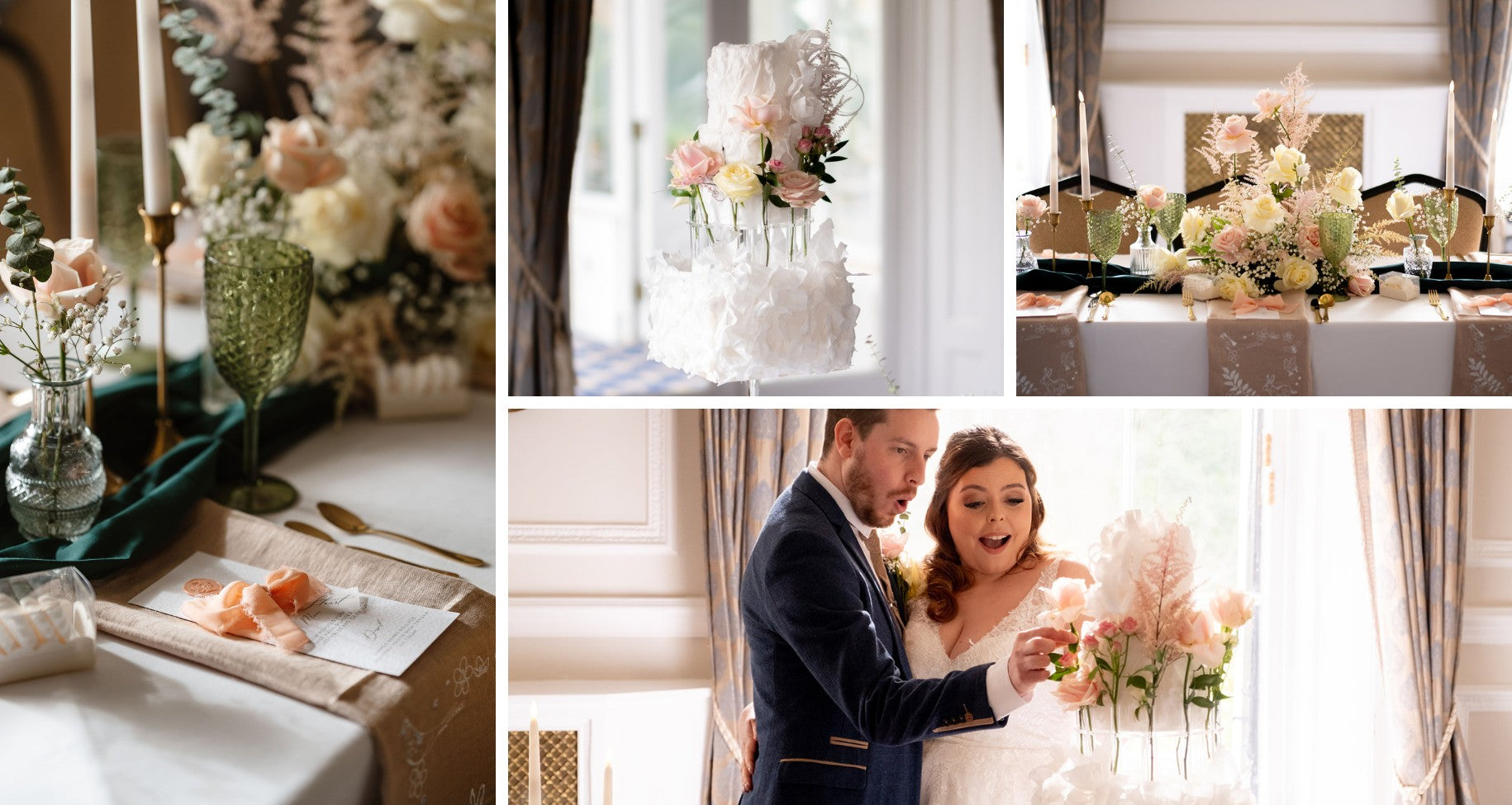 Notre équipe de rêve ne s'est pas arrêtée là. Nous avions Corlia Creations pour la papeterie, Burgeon Floral Design pour créer la magie florale, Lara Brewster pour rendre les visages encore plus beaux et Kim Sandford pour créer des chefs-d'œuvre capillaires. Et n'oublions pas Marina Bridal London, qui a fourni les superbes robes, et Tabitha Textiles, dont les serviettes et le voile ont ajouté ces touches d'élégance supplémentaires.