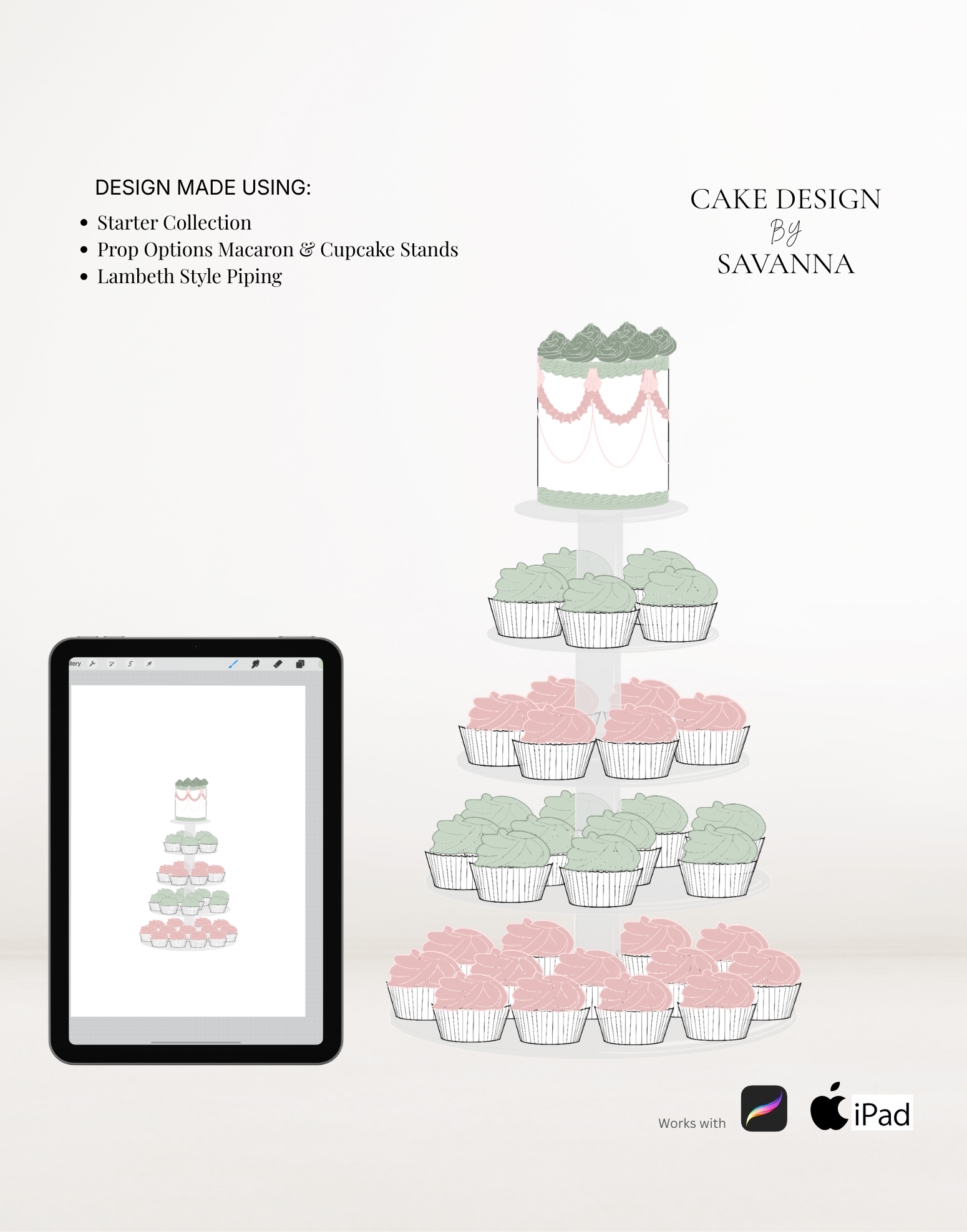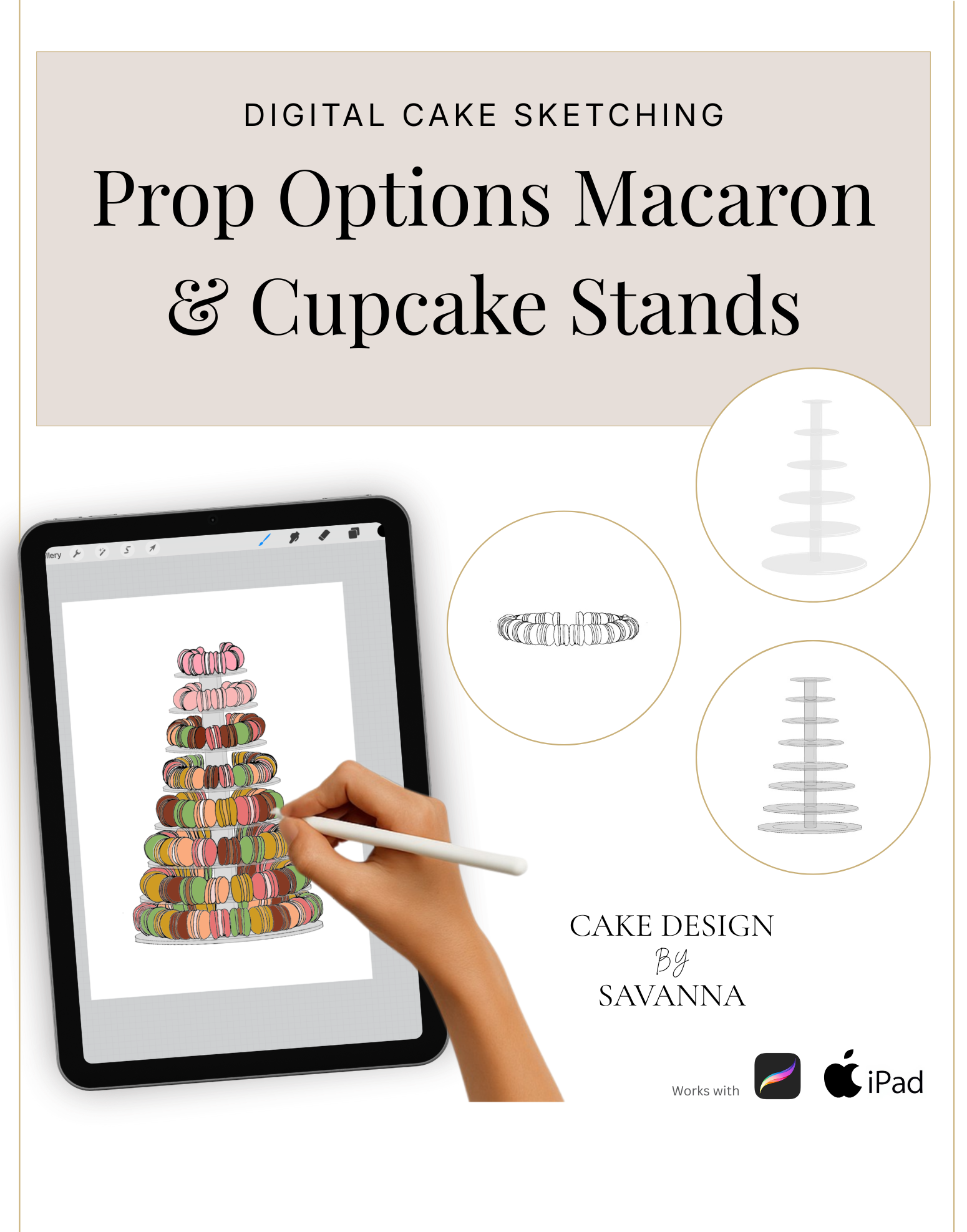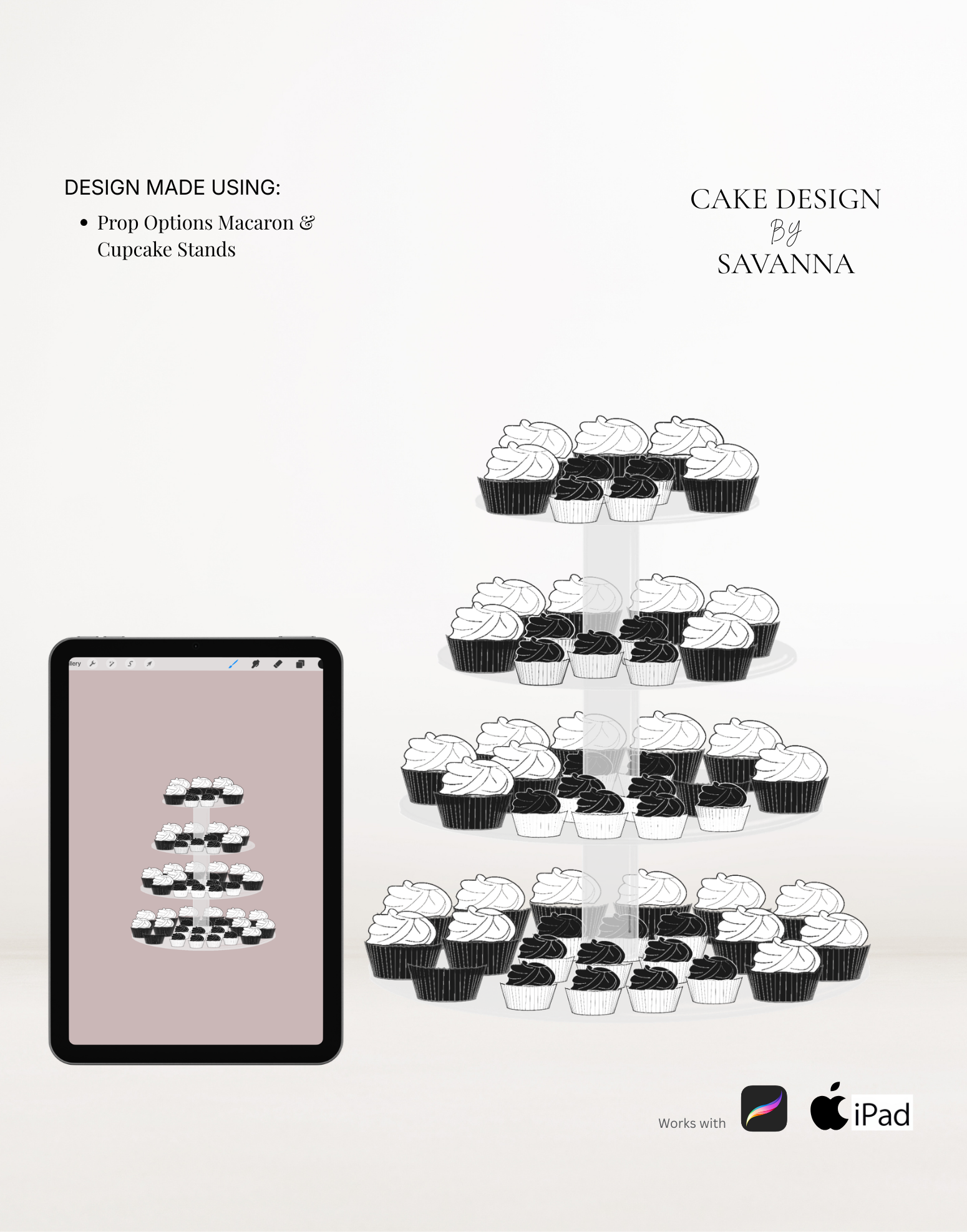 Cake Design Procreate Stamps: Prop Options Macaron & Cupcake Stand