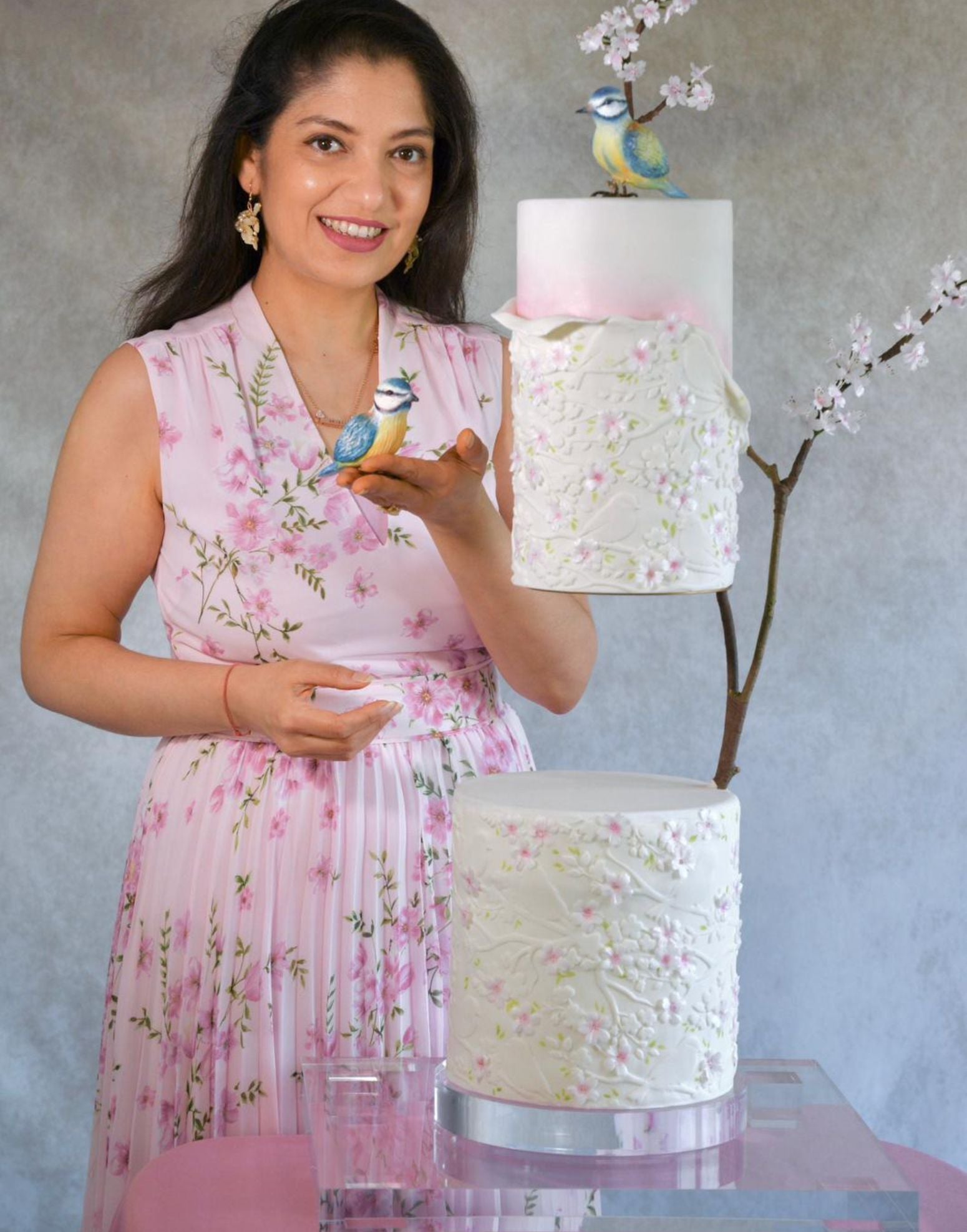 The Spring Serenade Rolling Pin – Anjali Tambde Collaboration features a flowing botanical design with delicate birds perched among blossom branches. Developed in partnership with Anjali Tambde of Global Cake Toppers, this pattern creates defined, sculpted impressions across fondant, modelling chocolate and buttercream panels with clarity and depth.
