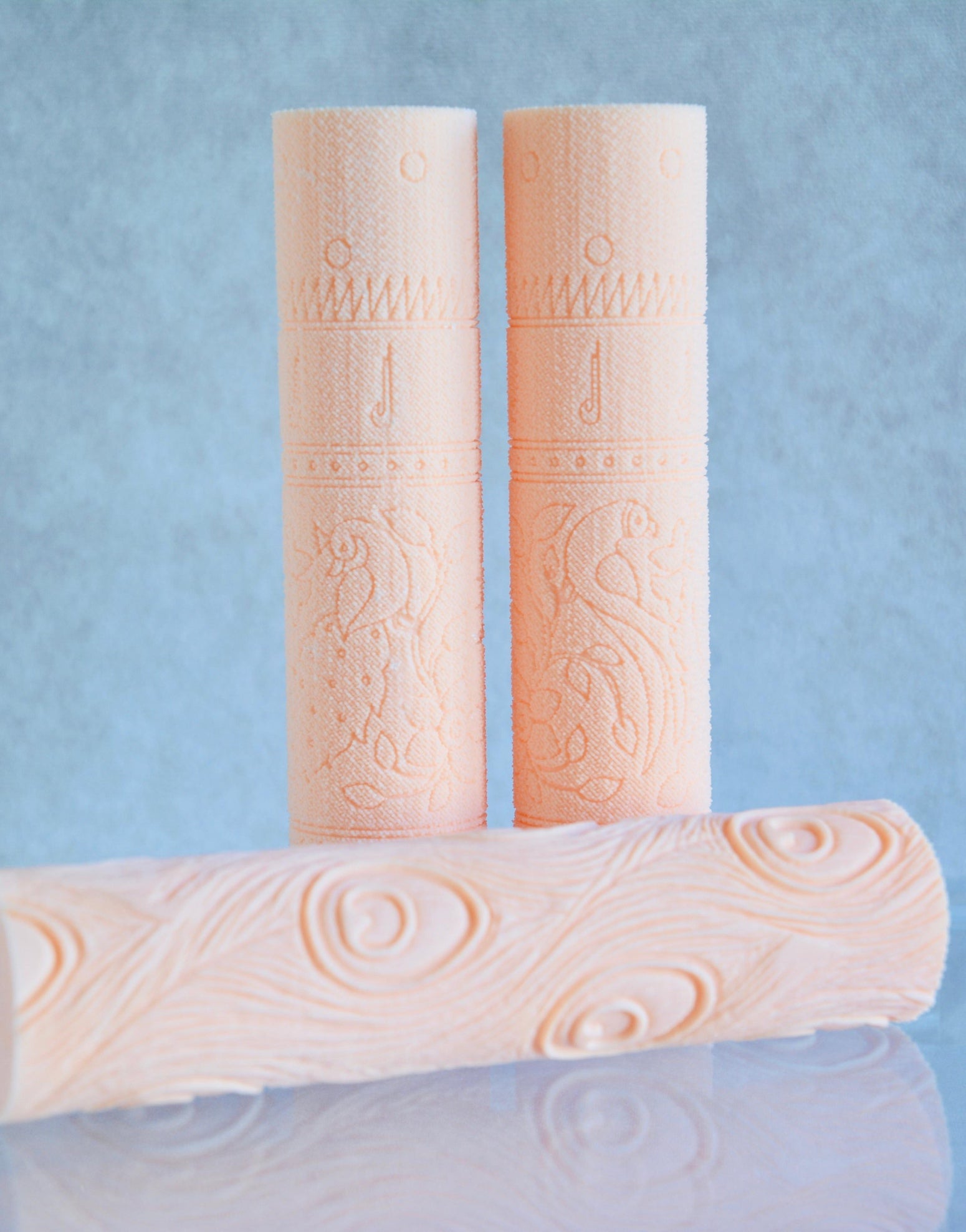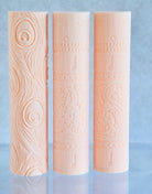 For an even texture across the whole surface, roll slowly and smoothly with steady hands. Apply consistent pressure through the centre and both ends of the rolling pin as you roll, so the imprint stays uniform from edge to edge.