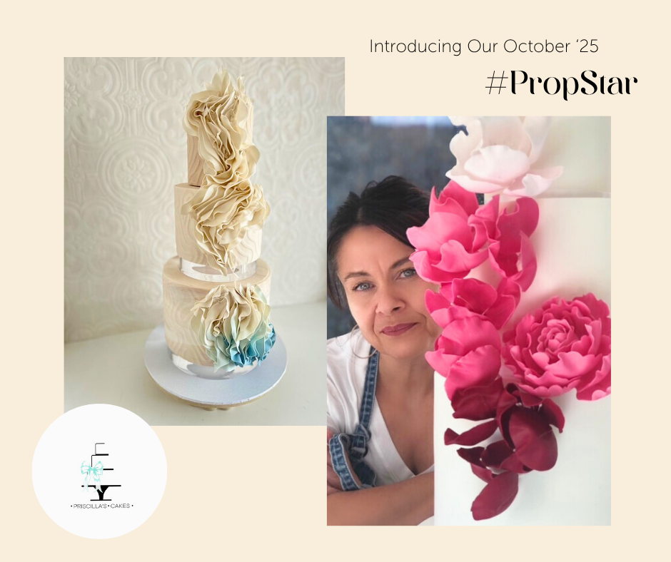 This month’s Prop Star goes to Priscilla’s Cakes, a leading name in Australia’s luxury wedding cake scene. Known for her elegant, floral-driven designs, Priscilla creates cakes that are timeless, romantic, and full of intricate sugar artistry. Her delicate sugar flowers and flawless finishes elevate each design into a true statement piece. We love how she incorporates our Prop Options stands to showcase her creations with effortless grace, making every cake feel like a centrepiece in its own right. Priscilla’s artistry blends sophistication and detail, making her the perfect choice for this month’s Prop Star.