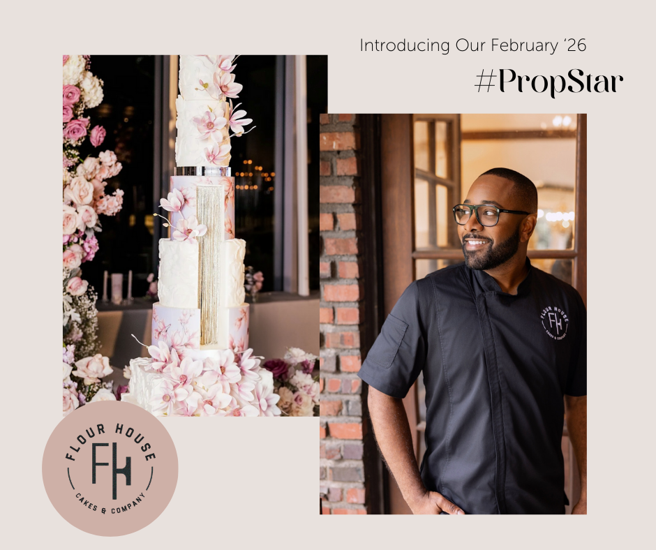 This month’s Prop Star goes to Flour House Cakes & Co. led by international award-winning cake designer Lincoln Alexander. Lincoln’s creations are bold yet impeccably refined, exuding an unmistakable sense of luxury. Each design is meticulously considered, making a striking statement while maintaining a sense of elegance and balance. We admire his masterful use of structure, scale, and pristine presentation, where both cake and display are elevated in perfect harmony. His approach to cake design is confident, intentional, and richly creative. Everything we admire in modern luxury cake artistry. We are proud to feature Flour House Cakes & Co. as this month’s Prop Star.